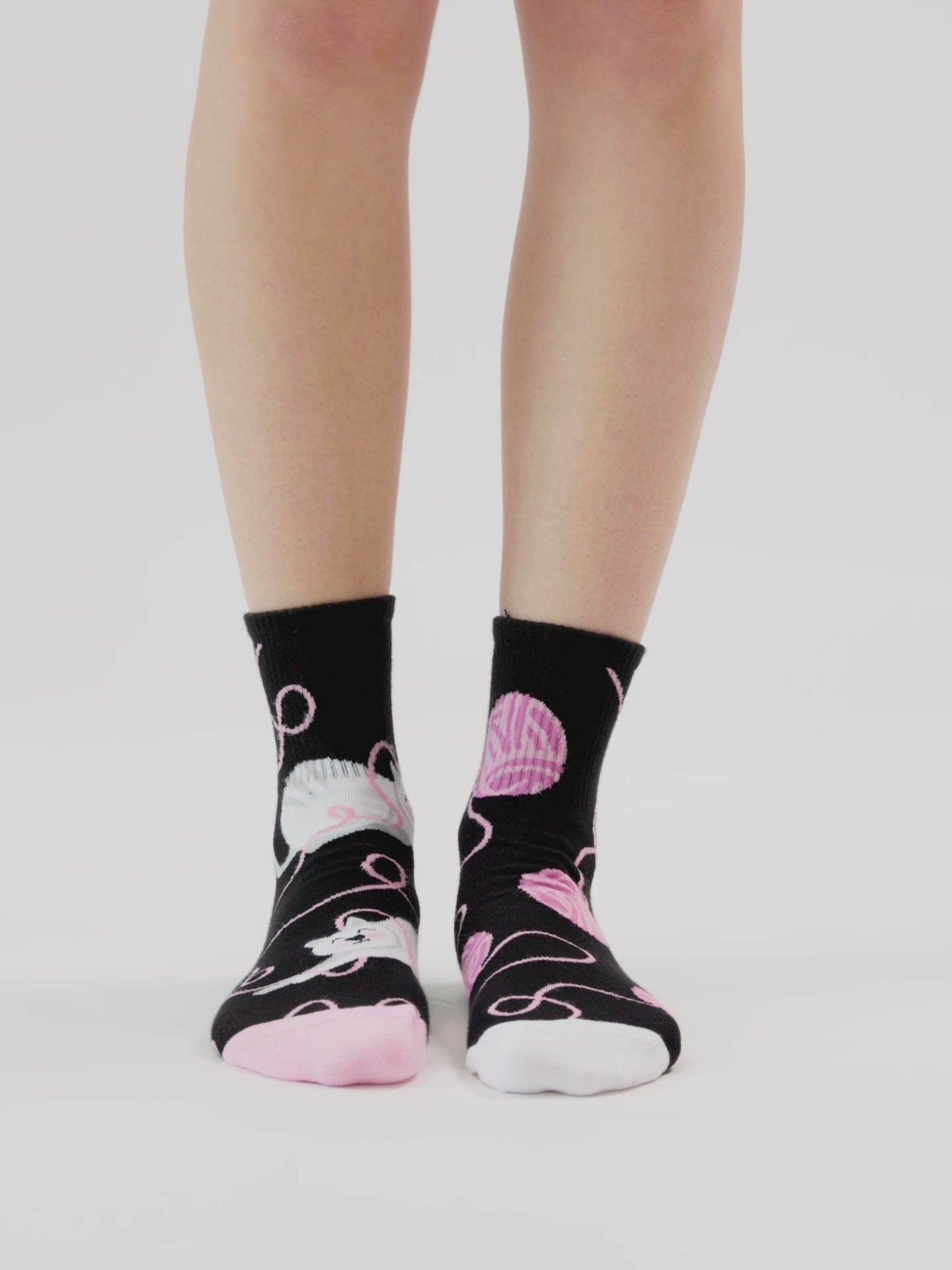 Sapevi che i gatti dormono in media 16 ore al giorno? E che cosa fanno quando non vogliono più dormire? Giocano! Fai felici i tuoi piedi con i calzini Buonumore a metà polpaccio con una graziosa fantasia di gatto e gomitolo. E ricorda... Non smettere mai di giocare!